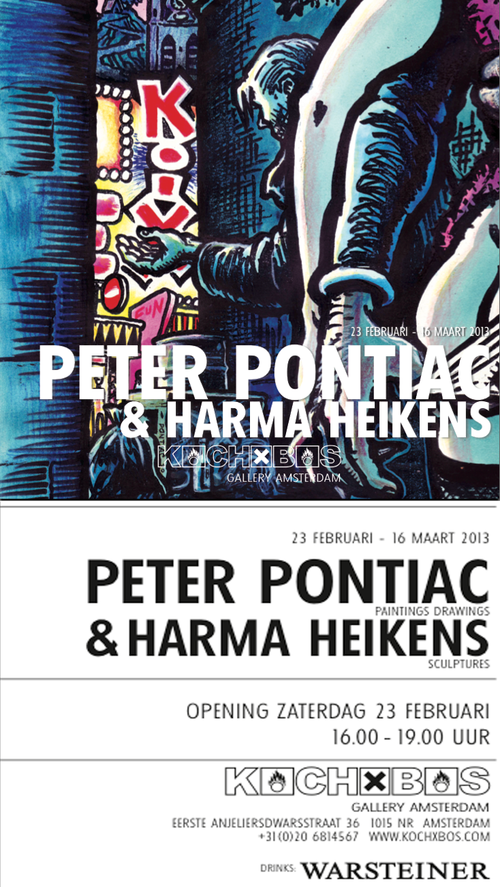 KochXBosUitnodigingZaterdag aanstaande wordt de tentoonstelling Peter Pontiac & Harma Heikens geopend in KochxBos Gallery in Amsterdam.